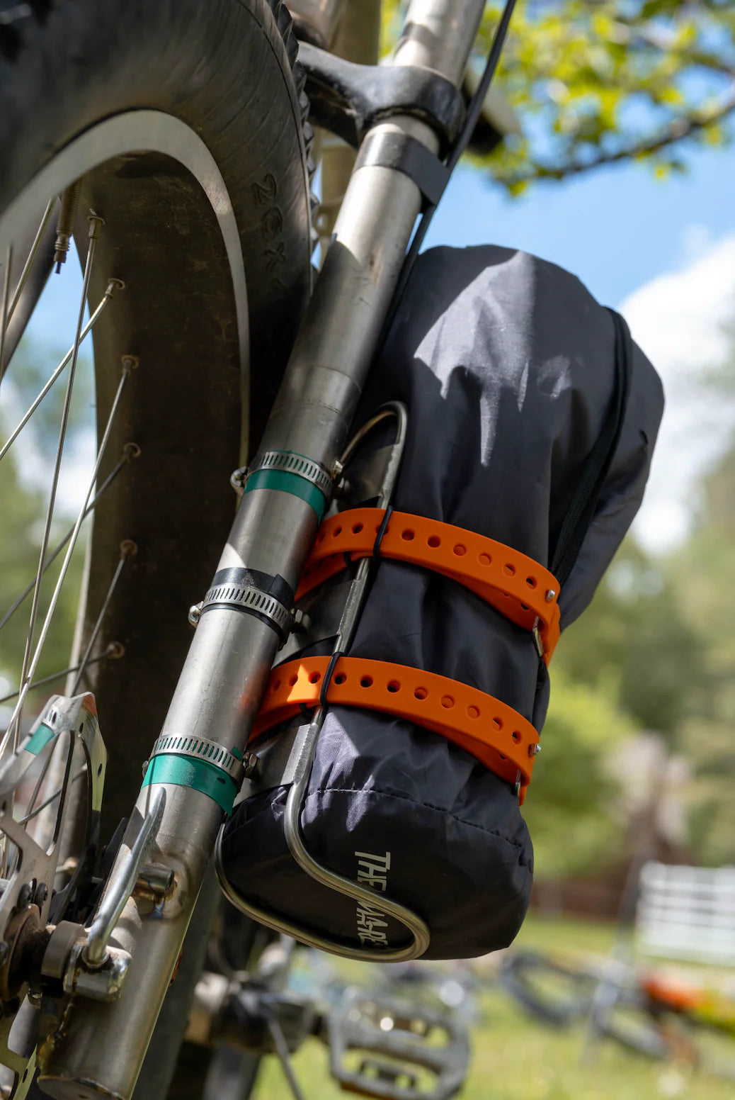 The Titanium Manything Cage is an indispensable accessory for serious bikepacking enthusiasts. True to its name, it is engineered to accommodate a wide array of items. Whether transporting oversized bottles or securing camping essentials such as tents, sleeping bags, and fuel, this cage offers reliable support. Its versatility even extends to elegantly transporting a bottle of wine to a dinner gathering. The hollow tube titanium variant lightens the load of this versatile cage.