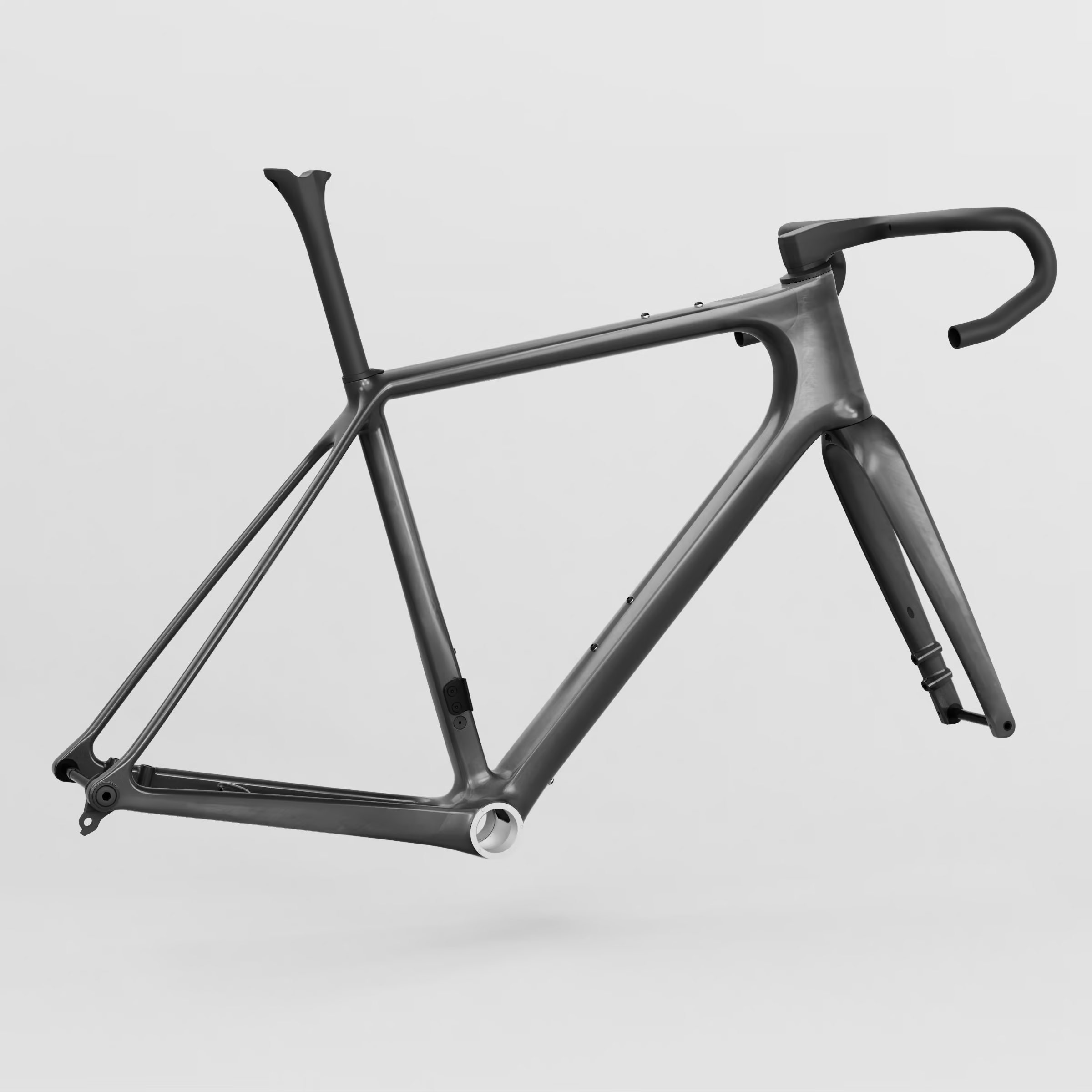 OPEN's U.P.PER. CONCE.PT represents a refined approach to frameset design, distilling performance down to its essentials. This inaugural model prioritizes rider comfort while strategically incorporating aerodynamic refinements that enhance rather than compromise the riding experience. Available exclusively in M and L sizes, the complete chassis includes frame, fork, integrated one-piece bar/stem, and seatpost—engineered as a cohesive system. Choose between carbon black with protective clearcoat and OPEN branding, or Raw Ready-to-paint for custom finishing. We'll work with you to dial in the ideal bar/stem geometry for your proportions.